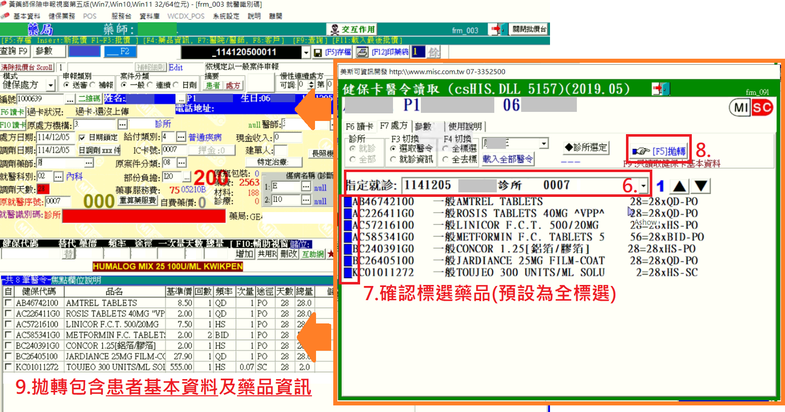 DPCIP系統透過F6讀卡可拋轉健保卡內就醫紀錄,加快處方箋鍵單效率