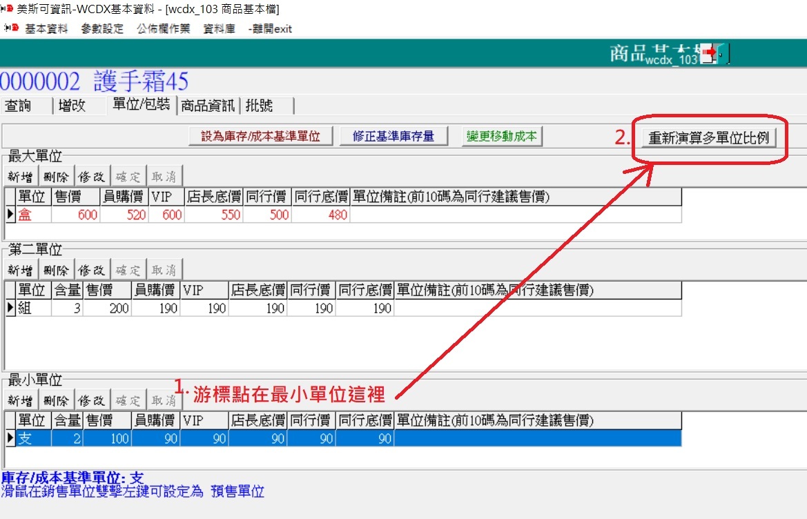 可嘗試先去做商品基本資料的"重新演算多單位比例"