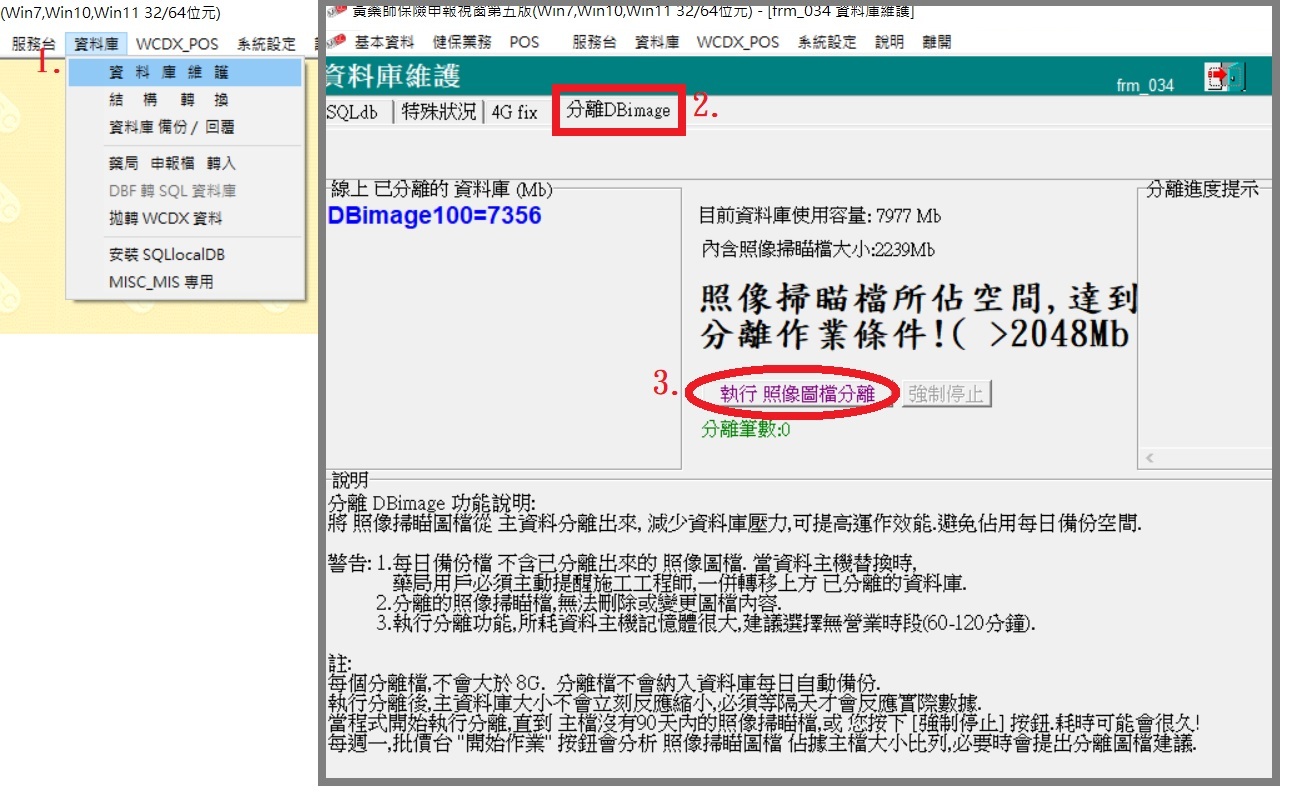藥師至資料庫>資料庫維護>分離DBimage>執行照相圖檔分離
