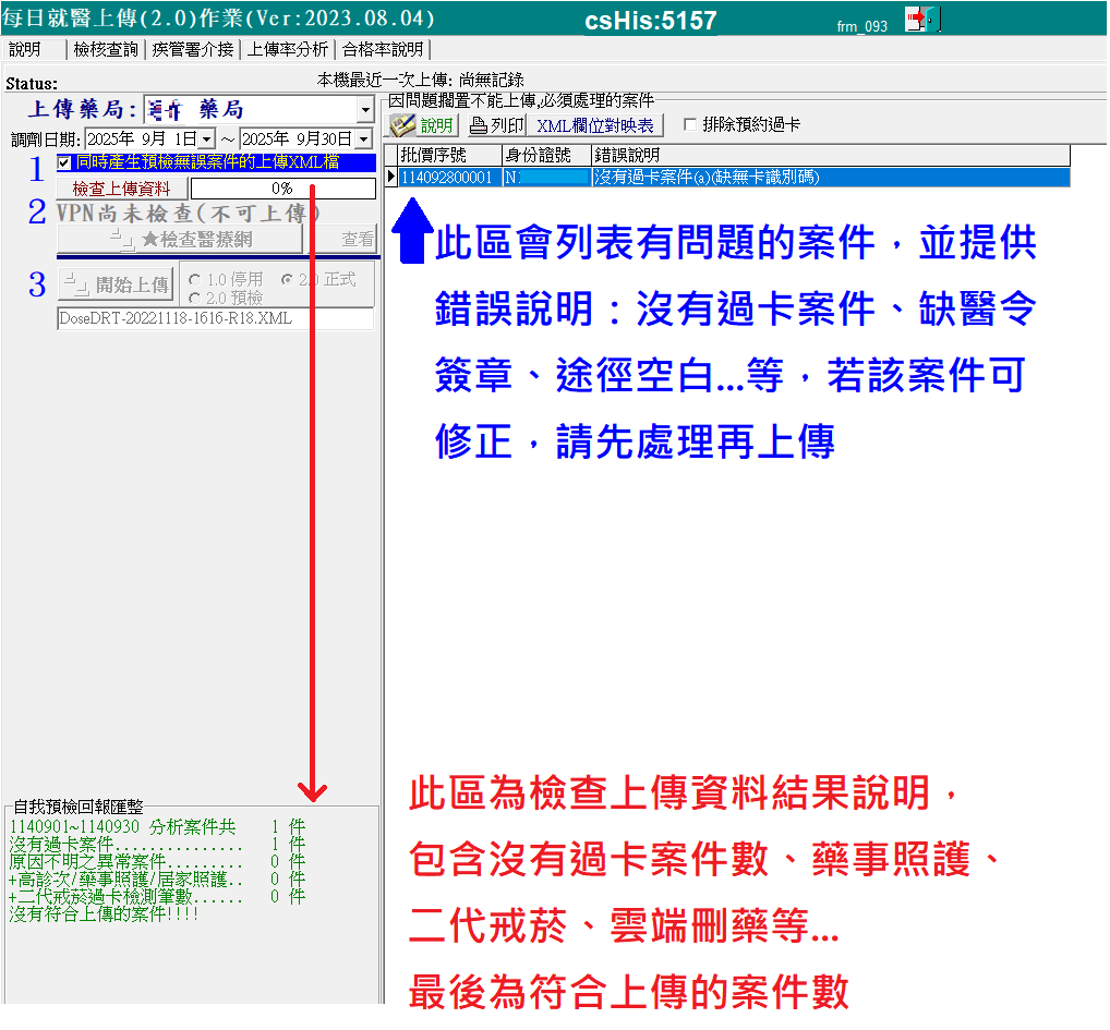 此時請注意下方預檢回報彙整案件數,以及右方的錯誤案件列表及說明