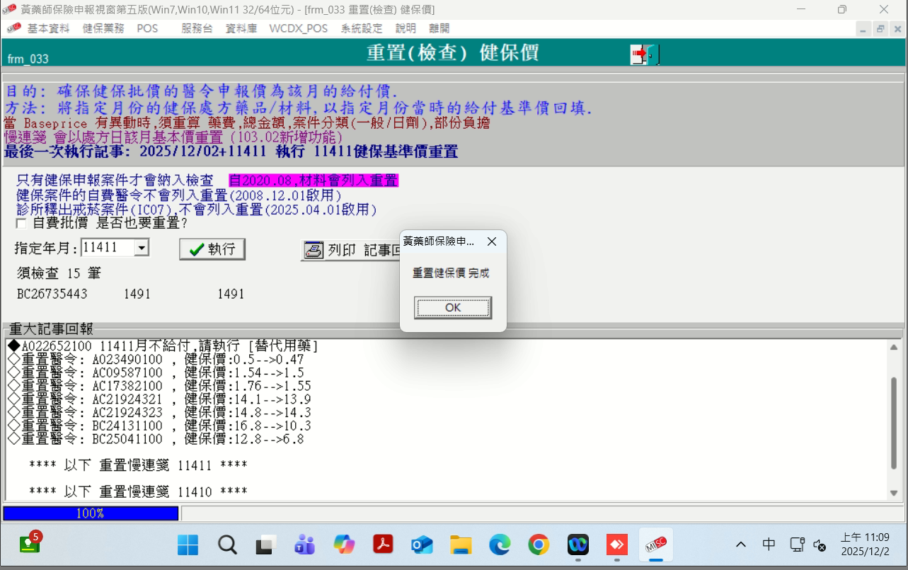 步驟一、建議先執行申報月份(以114/11為例)重置健保價